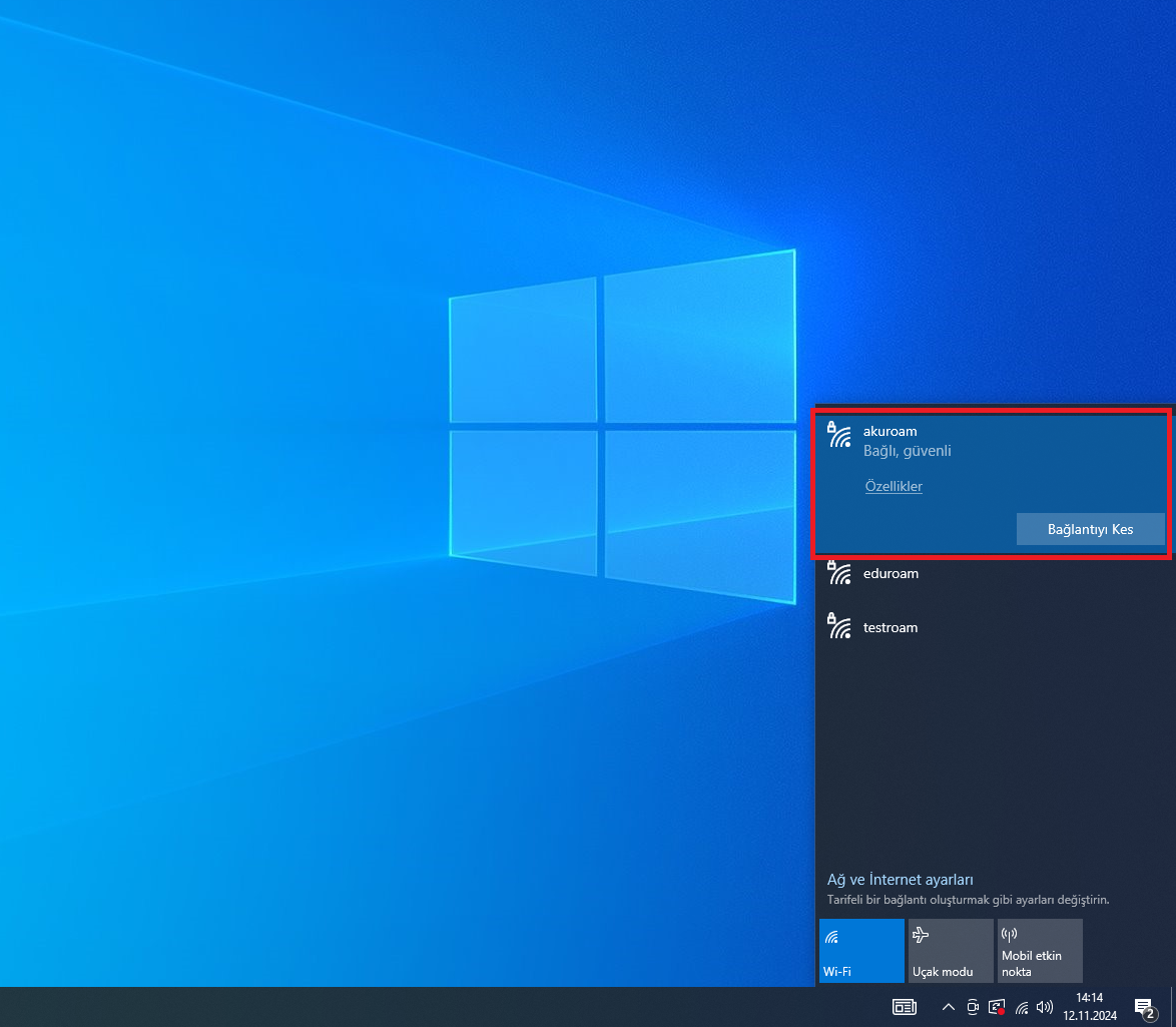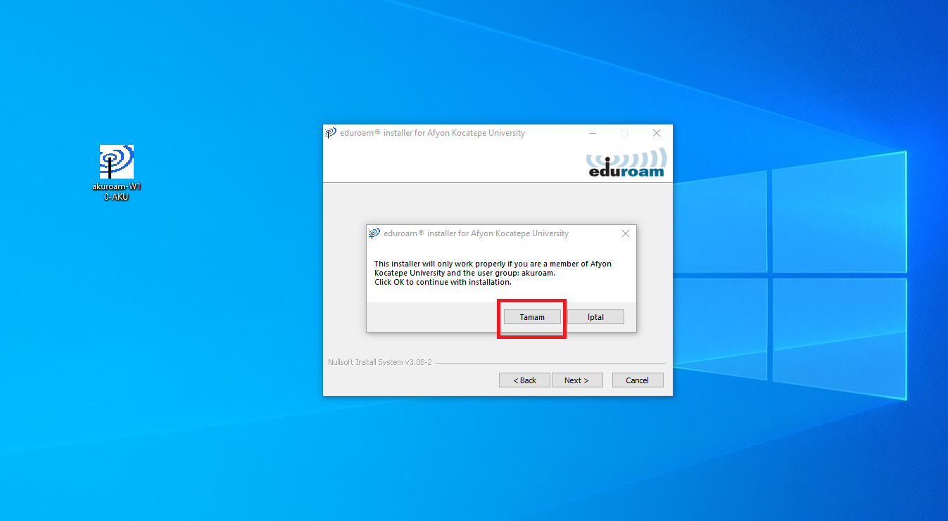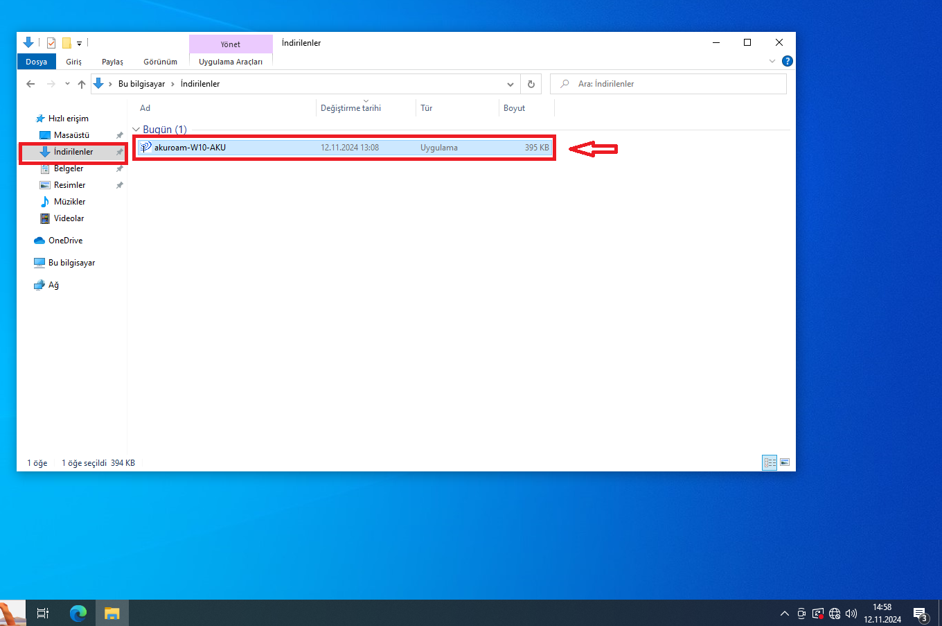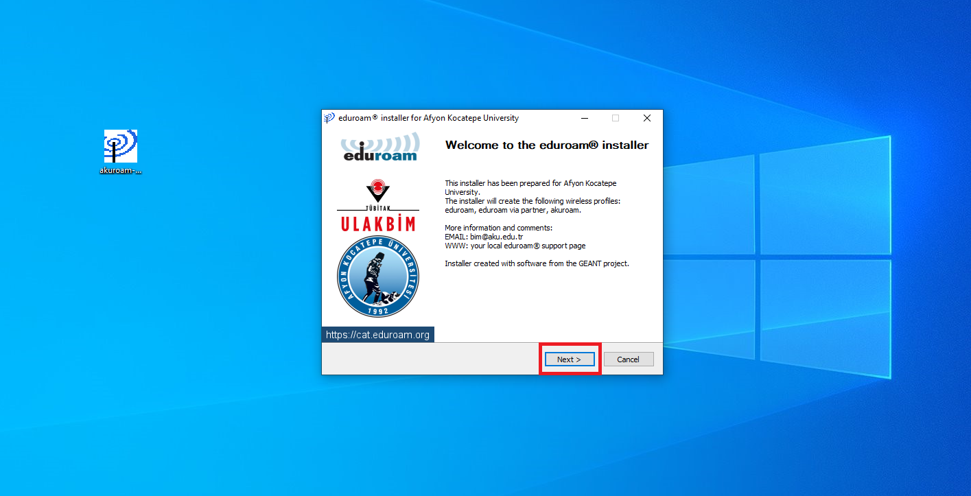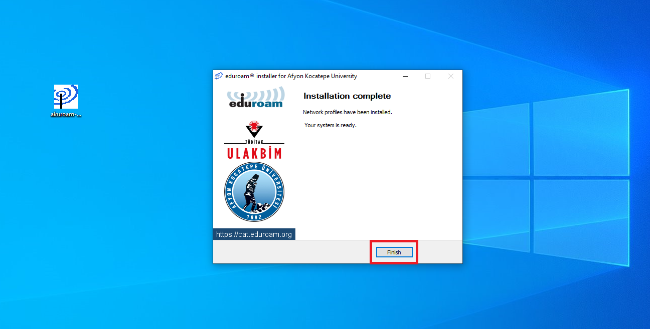 1.)İnternet bağlantısı bulunan cihazlarda web tarayıcınızdan https://akuroam.aku.edu.tr/eduroam-W10-AKU-akuroam bağlantısını tıklayarak indirilip kurulum aşamasına geçebilirsiniz. İndirilen klasöründeki eduroam-W10-AKU-akuroam programını çalıştırınız.