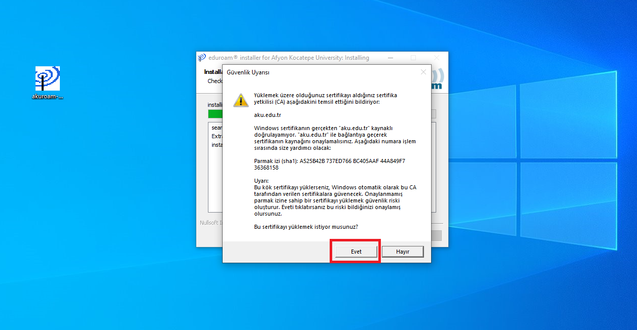 5.) Güvenlik Uyarısına EVET tıklayınız.